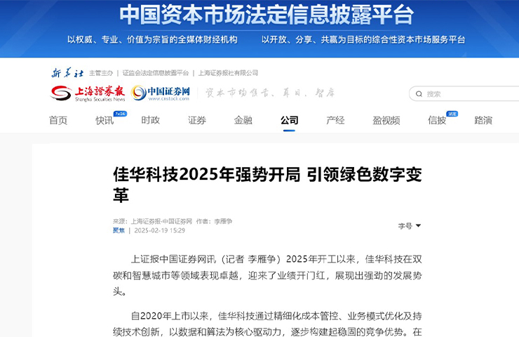 上海證券報 | 佳華科技2025年強(qiáng)勢開局 引領(lǐng)綠色數(shù)字變革